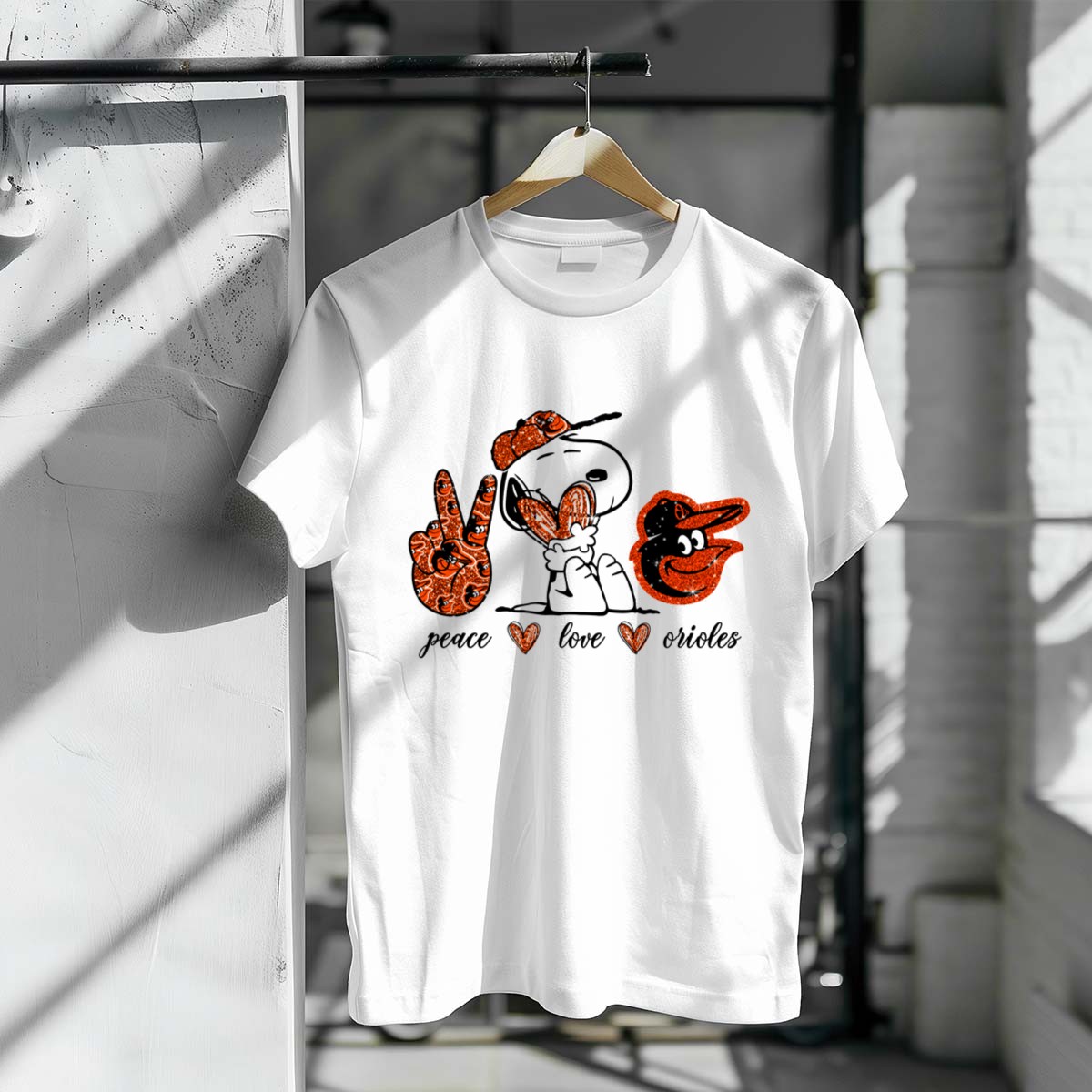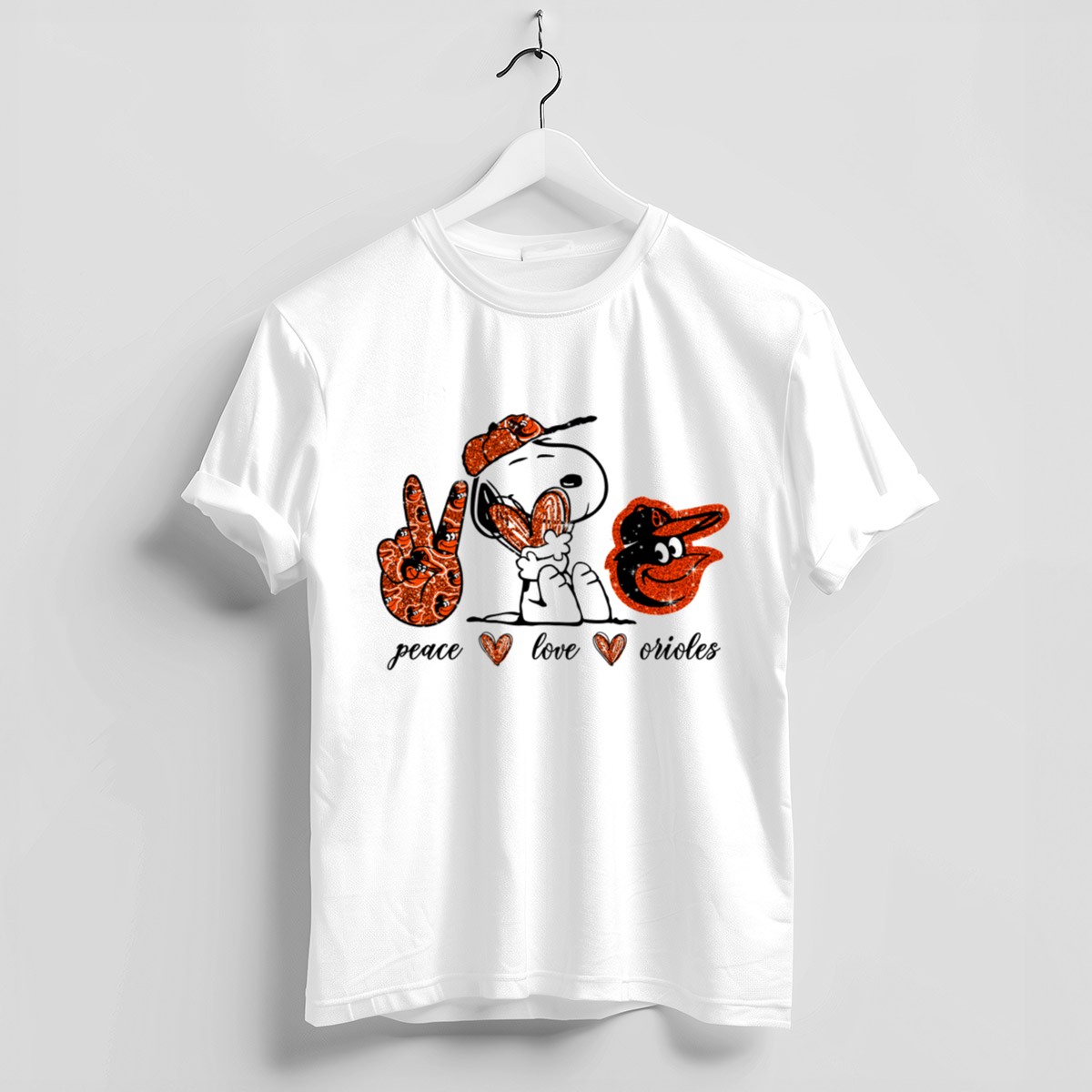 Celebrate your love for the Baltimore Orioles with our Peace Love Orioles Snoopy Style T-Shirt! This fan-made design combines the iconic charm of Snoopy with a vibrant tribute to your favorite baseball team. Perfect for casual outings, themed events, or just showing off your team spirit during daily wear, this t-shirt is a must-have for any devoted Orioles fan. Crafted for comfort and style, it’s printed right here in the USA, making it a unique addition to your wardrobe.