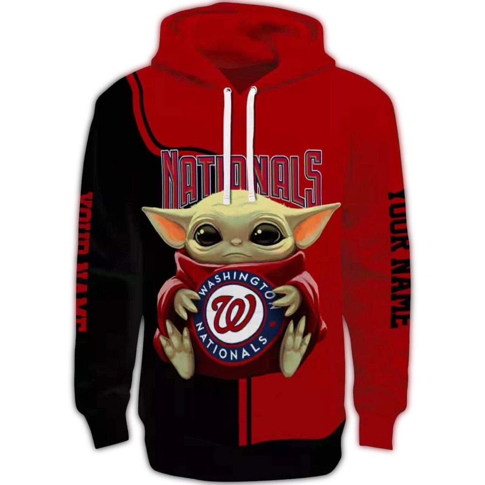 Embrace your love for the Washington Nationals with our Personalized Baby Yoda All-over Print Hoodie, designed for fans who want to showcase their team spirit in style. Perfect for casual outings or cozy days at home, this hoodie is a unique blend of fandom and comfort, making it a must-have for any true supporter.
