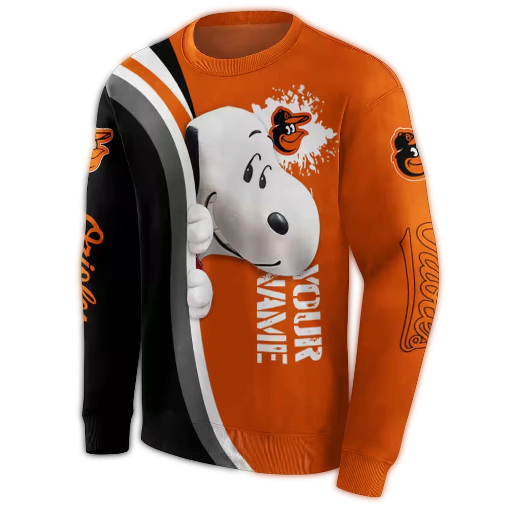 Introducing the Personalized Baltimore Orioles Peeking Snoopy All Over Print Sweatshirt, a must-have addition for any fan looking to showcase their love for the game in style. This cozy, all-over printed sweatshirt is perfect for casual outings, lounging at home, or even hitting the gym. With its unique design featuring Snoopy peeking through the iconic Baltimore Orioles branding, it brings a playful twist to your everyday wardrobe.