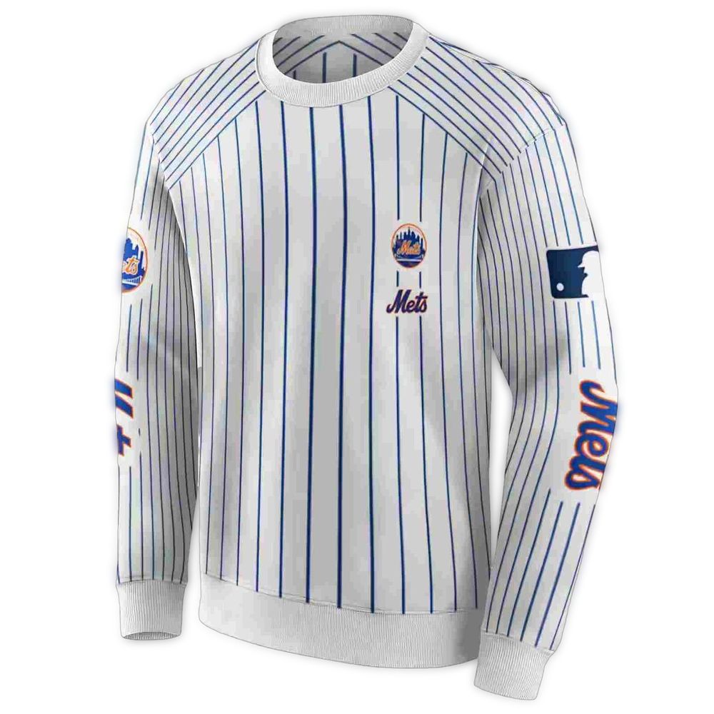 Show off your team spirit with this Personalized New York Mets Pinstripe Pattern All-over Print Sweatshirt. Perfect for die-hard fans and casual wearers alike, this sweatshirt is designed for those who appreciate style and comfort, making it an ideal choice for game days, casual outings, or lounging at home. Its unique all-over print adds a modern twist to a classic look, ensuring you stand out in any crowd.