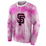 Introducing the Personalized San Francisco Giants Cancer Support Pink All Over Print Sweatshirt, a must-have for any dedicated fan and supporter of a meaningful cause. This cozy sweatshirt is perfect for casual outings, lounging at home, or showing your team spirit while participating in charitable events. With its unique design, it not only celebrates your love for the Giants but also raises awareness for cancer support, making it a standout piece in any streetwear collection.