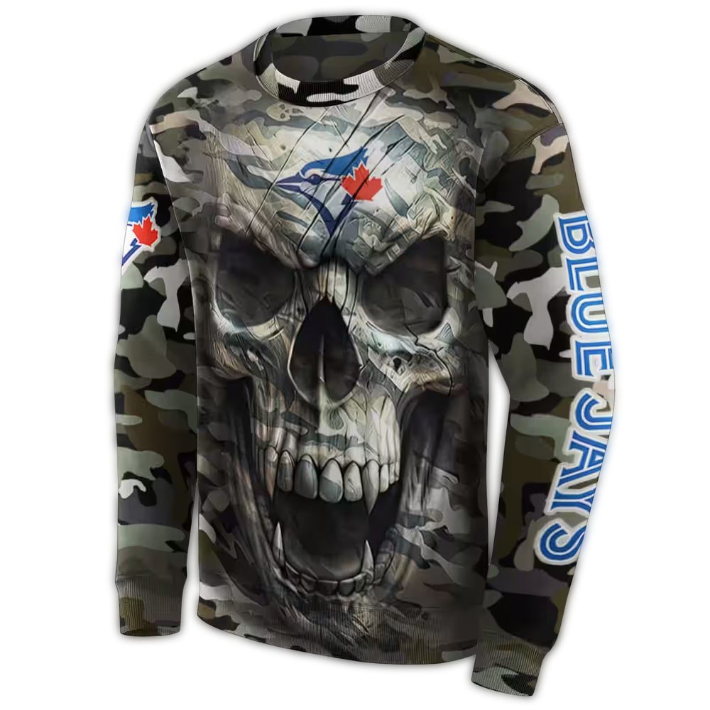 Introducing the Personalized Toronto Blue Jays Camo Skull All Over Print Sweatshirt – a striking addition to your streetwear collection. Perfectly designed for fans who love to showcase their team spirit, this sweatshirt is ideal for casual outings, sporting events, or cozy days at home. With its unique camo skull design, it brings a modern edge to your wardrobe while keeping you comfortable and stylish.