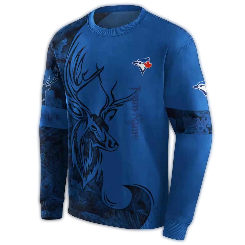 Elevate your streetwear game with our Personalized Toronto Blue Jays Deer Silhouette All Over Print Sweatshirt. Designed for fans and fashion lovers alike, this unique sweatshirt is perfect for casual outings, cozy nights in, or energetic days at the gym. With its vibrant design and modern edge, it’s not just a piece of clothing; it’s a statement.