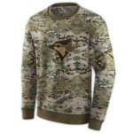 Embrace your love for the Toronto Blue Jays with this personalized military-style all-over print sweatshirt. Ideal for fans seeking a cozy yet stylish addition to their streetwear collection, this sweatshirt is perfect for casual outings, lounging at home, or cheering from the stands. The unique design captures the spirit of the team while offering a modern edge that stands out.