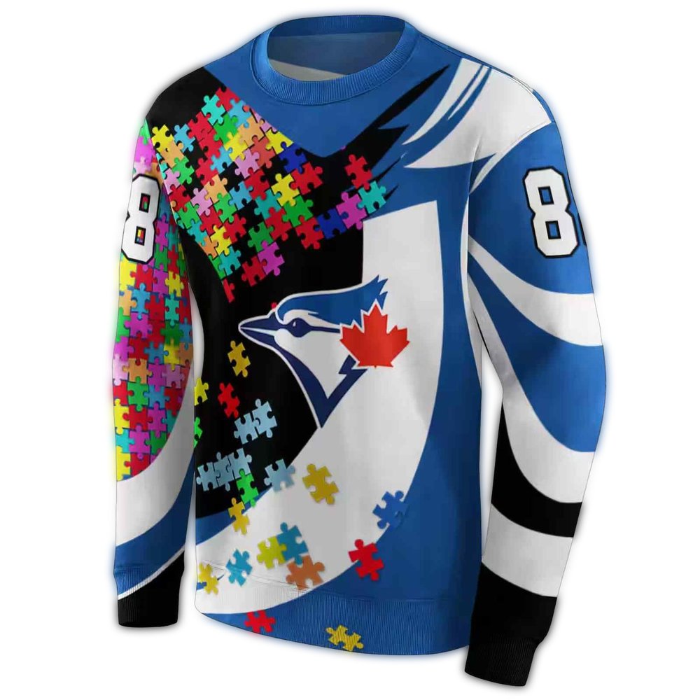 Step up your streetwear game with our Personalized Toronto Blue Jays Puzzle Pieces All Over Print Sweatshirt. Designed for fans and fashionistas alike, this sweatshirt is perfect for casual outings, game days, or cozy nights in. Its unique all-over print captures the essence of the Toronto Blue Jays in a stylish and modern way, making it a must-have addition to your wardrobe.
