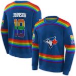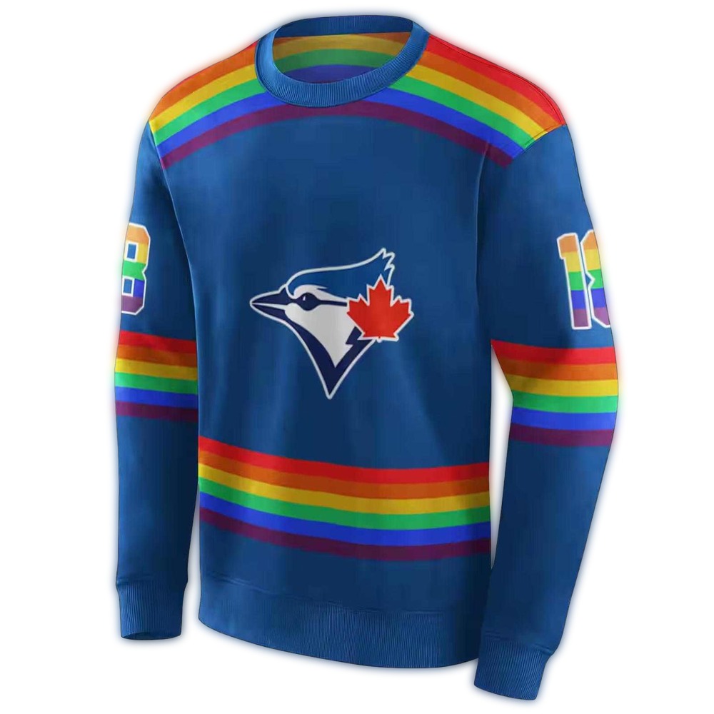 Show off your love for the Toronto Blue Jays with this vibrant Rainbow Stripes All Over Print Sweatshirt. Designed for fans who want to express their team spirit in style, this sweatshirt is perfect for casual outings, game days, or just lounging at home. Its unique all-over print ensures you stand out from the crowd while keeping cozy and comfortable.