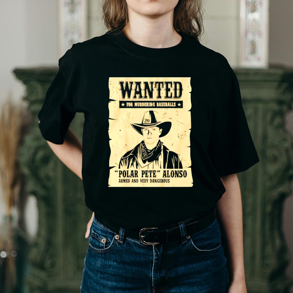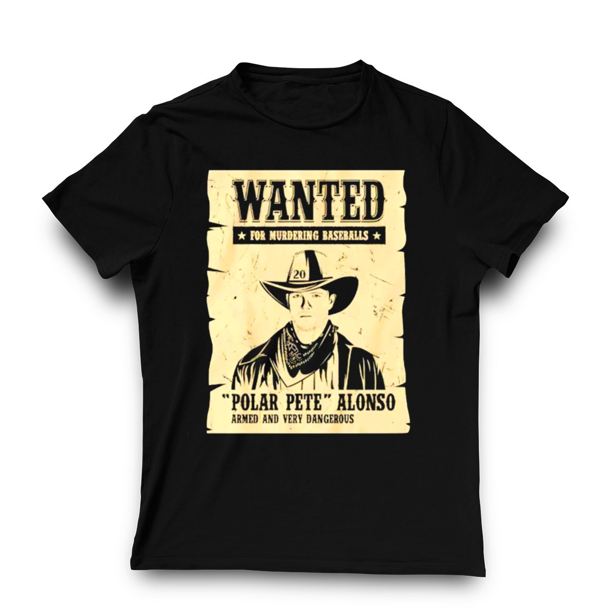Show your support for Pete Alonso and the New York Mets with this eye-catching graphic T-shirt that captures the excitement of the game! Featuring a bold design that playfully declares “Wanted for Murdering Baseballs,” this shirt is perfect for die-hard Mets fans, casual outings, or themed events. Made for comfort and style, it’s a must-have for anyone looking to showcase their passion for baseball in a fun way.