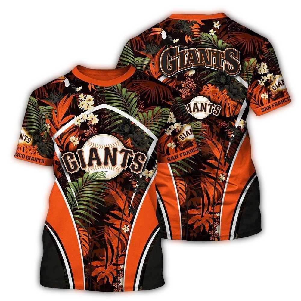 Step up your casual wardrobe with our San Francisco Giants Floral Leafs All Over Print T-Shirt! Perfect for fans and fashion enthusiasts alike, this T-shirt combines vibrant floral graphics with the iconic spirit of the Giants, making it a standout piece for any occasion. Whether you’re heading to a game, hanging out with friends, or just enjoying a day out, this shirt is designed to express your unique style while celebrating your team.