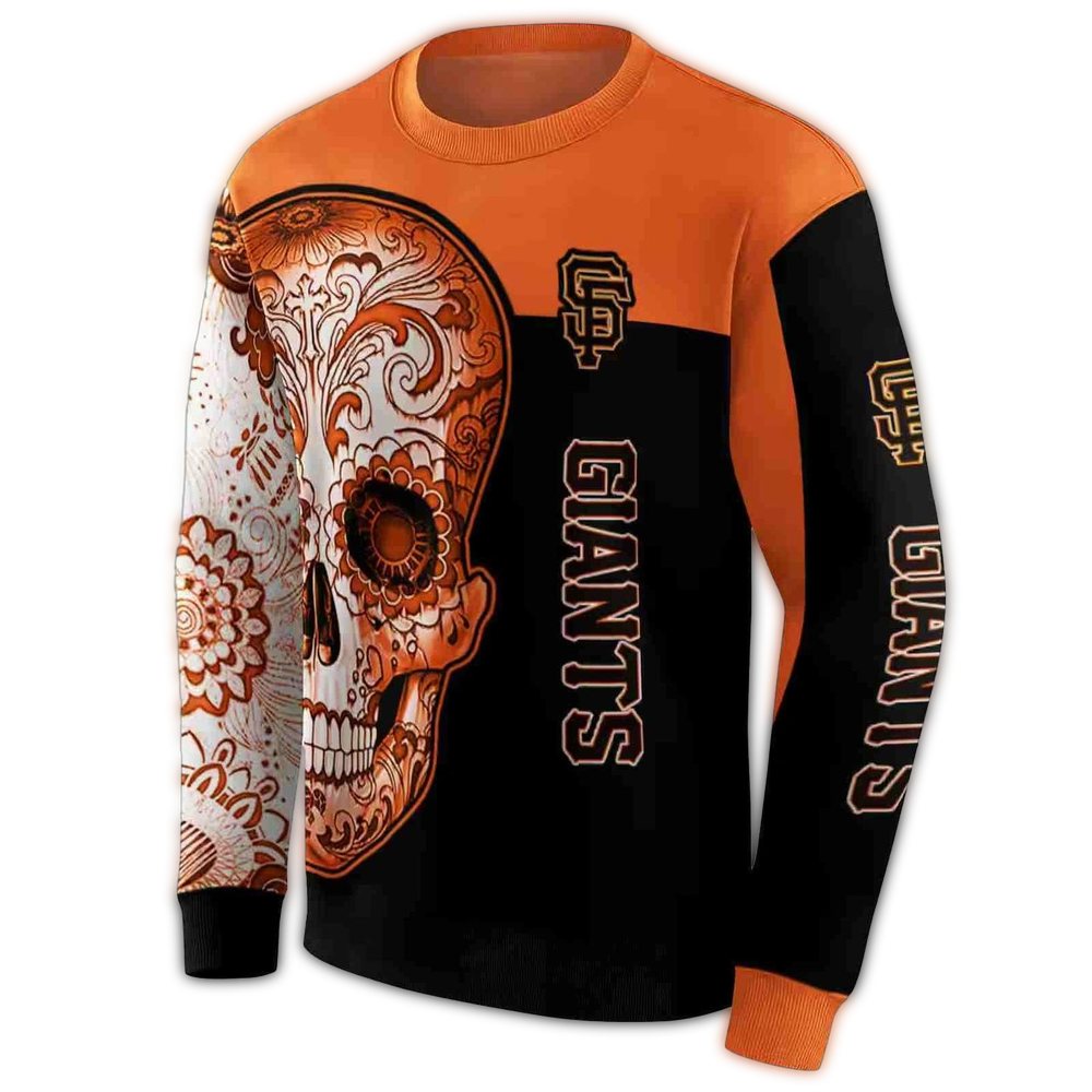 Embrace your love for the San Francisco Giants with our Sugar Skull All-Over Print Sweatshirt, designed for fans who appreciate both style and comfort. Perfect for casual outings, lounging at home, or hitting the gym, this unique sweatshirt adds a vibrant edge to any streetwear ensemble while keeping you cozy through the winter season.