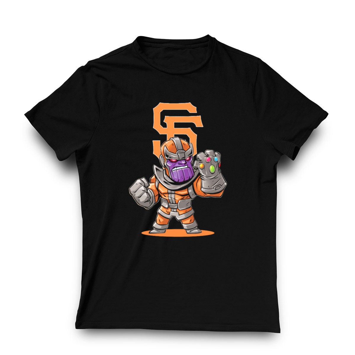 Show off your love for both baseball and the Marvel universe with our San Francisco Giants Thanos Mashup Fan Art T-Shirt! This unique design features the iconic Infinity Gauntlet alongside your favorite team’s logo, making it the perfect choice for passionate fans who want to stand out at the ballpark or during themed events. Crafted for comfort and style, this tee is ideal for casual wear, ensuring you look great while cheering for the Giants or just hanging out with friends.