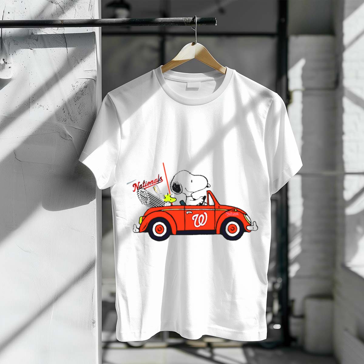 Show off your love for baseball and iconic characters with our Snoopy and Woodstock in Red Car T-shirt, perfect for fans of the Washington Nationals! This playful design captures the spirit of fun and camaraderie, making it ideal for casual outings, themed events, or simply cheering on your favorite team from the comfort of home. With its fan-made graphic printed in the USA, this shirt combines style and comfort for every baseball enthusiast.