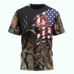 Introducing the St Louis Cardinals Camo Hunting All Over Print T-shirt, a perfect blend of style and spirit for avid fans and outdoor enthusiasts alike. This unique graphic tee is ideal for game days, casual outings, or simply making a bold fashion statement while enjoying your favorite activities. With its eye-catching camouflage design, this shirt stands out in any crowd while showcasing your loyalty to the Cardinals.