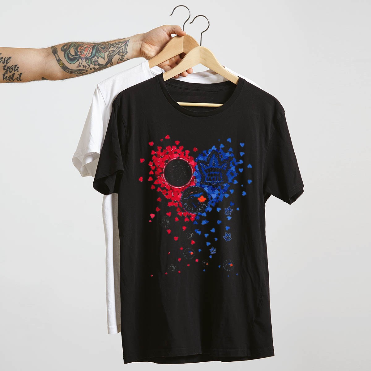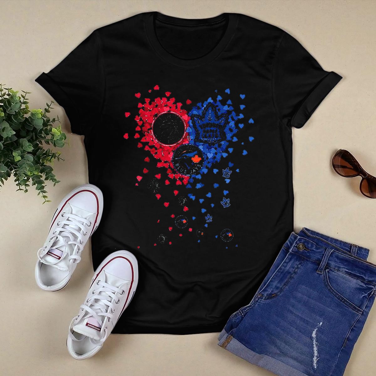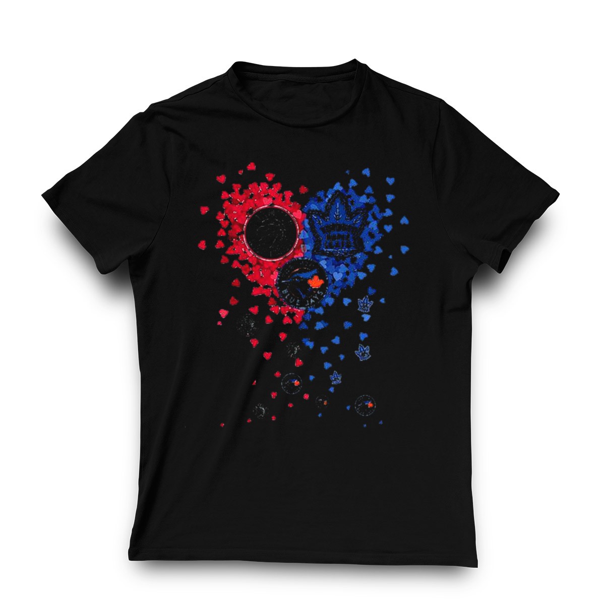 Show your love for Toronto’s iconic teams with the Toronto Raptors Maple Leafs Blue Jays Heart T-Shirt! This fan-made design is perfect for sports enthusiasts who want to showcase their team spirit in style. Made for casual wear, themed events, or everyday outings, this shirt is not just a statement piece but also a celebration of your favorite teams. With its soft, breathable cotton fabric and classic fit, you’re sure to stay comfortable while cheering on the Raptors, Maple Leafs, and Blue Jays all season long!