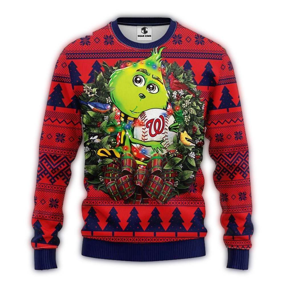 Washington Nationals Grinch Hug Logo Ugly Sweater For Holiday Cheer