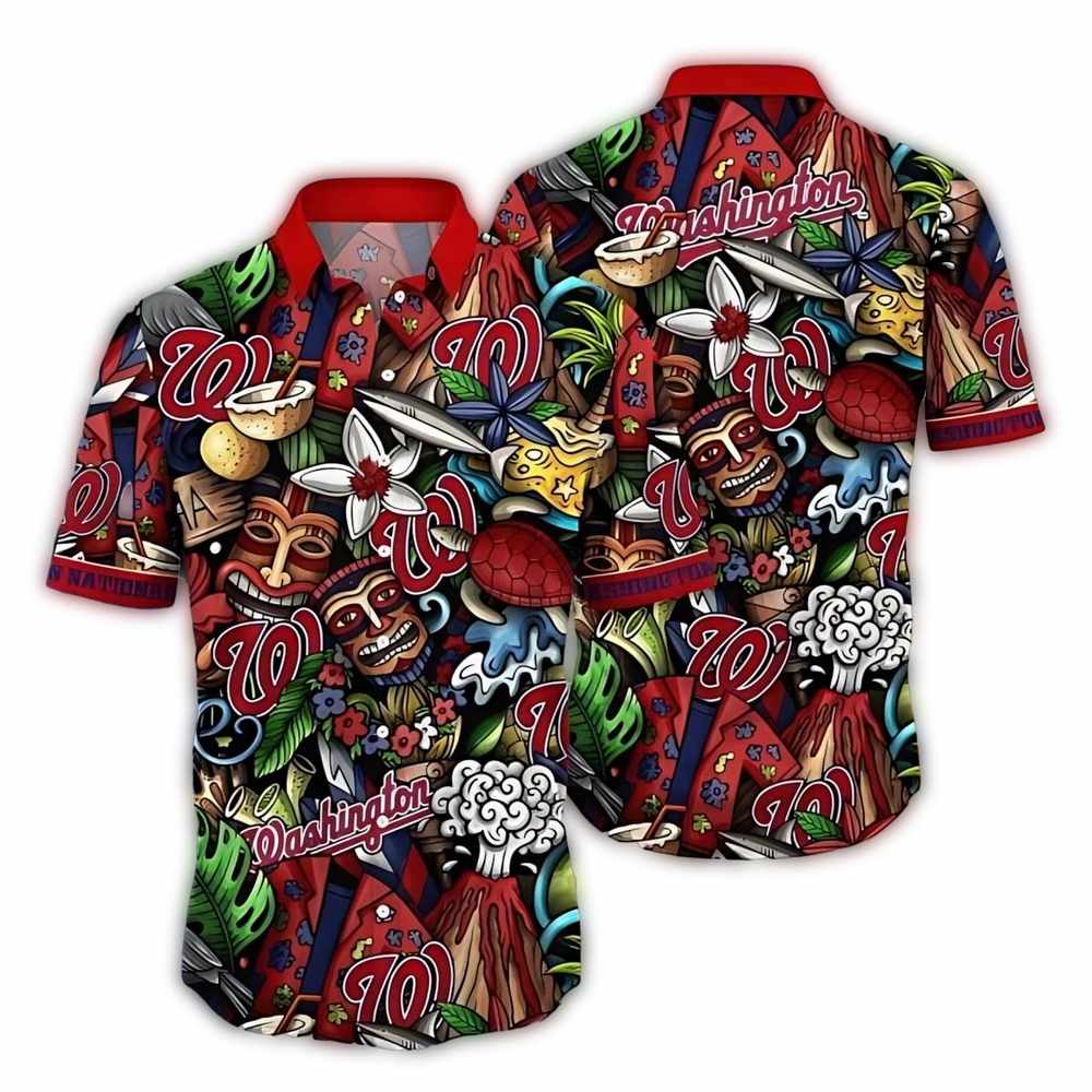 Bring the spirit of summer and your love for baseball together with our Washington Nationals Tiki Floral Pattern Tropical Splash Hawaiian Shirt. Perfect for fans and casual wearers alike, this vibrant shirt is ideal for beach outings, backyard barbecues, or any warm-weather adventure. Stand out in style with its unique graphic print that showcases a lively blend of tropical elements and team pride!